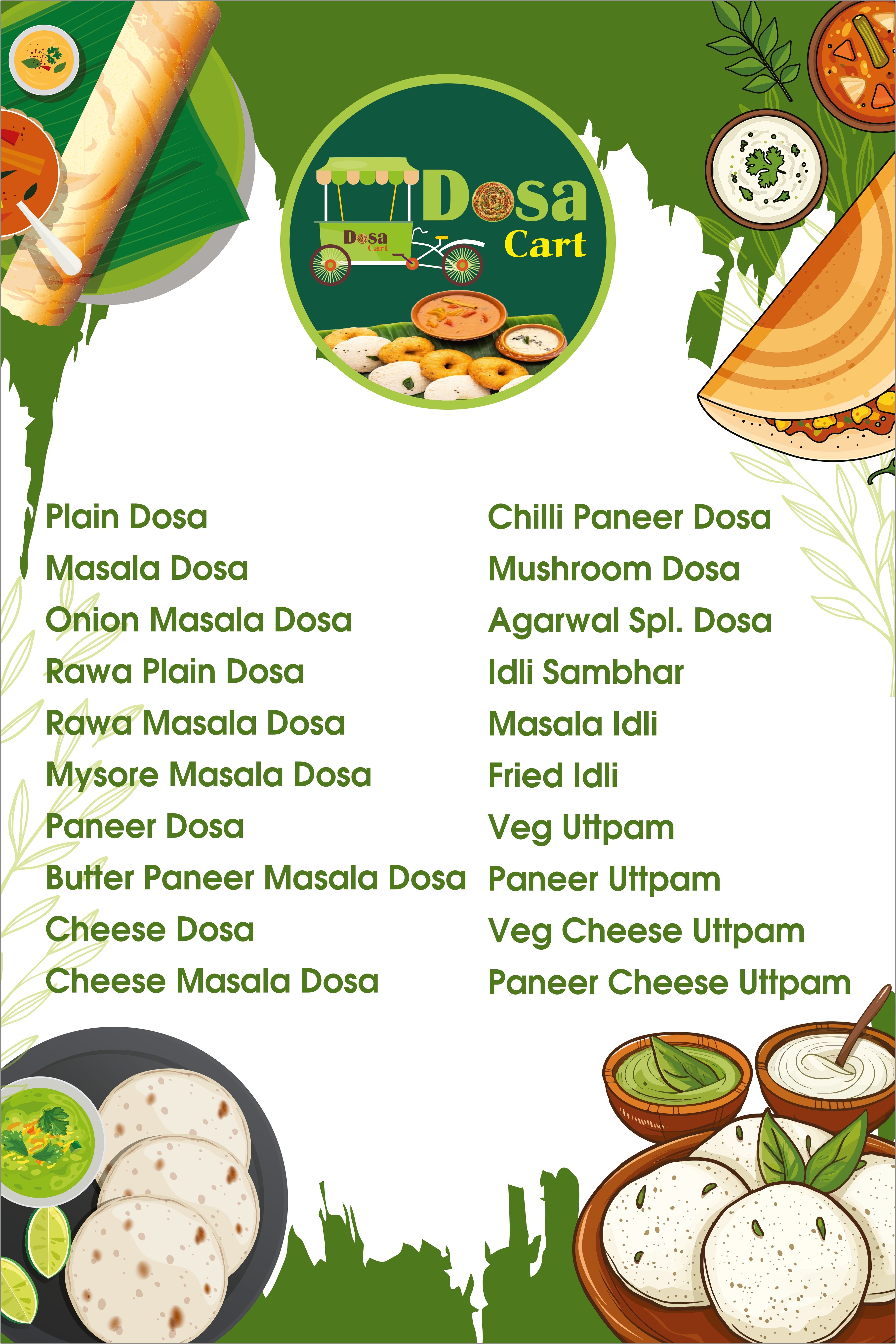 The menu is designed to cover all popular South Indian favorites. From crispy dosas to soft idlis and flavorful uttapams, the variety here makes it one of the best dosa carts in Mansarovar Jaipur.